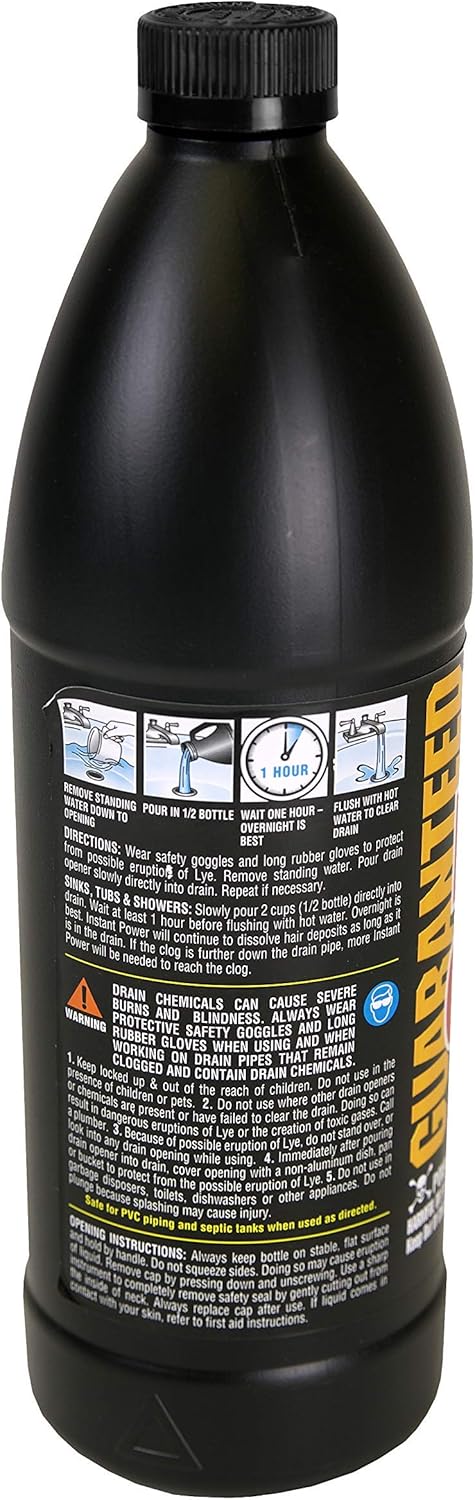 . Packaging may contain one - 2 liter container or two-1 liter containers. Our Instant Power Hair and Grease Drain Opener is the solution for the most common drain stoppages. Instant Power Heavy Duty Drain Opener 2 Liter is the most effective non-acid liquid drain opener on the market.